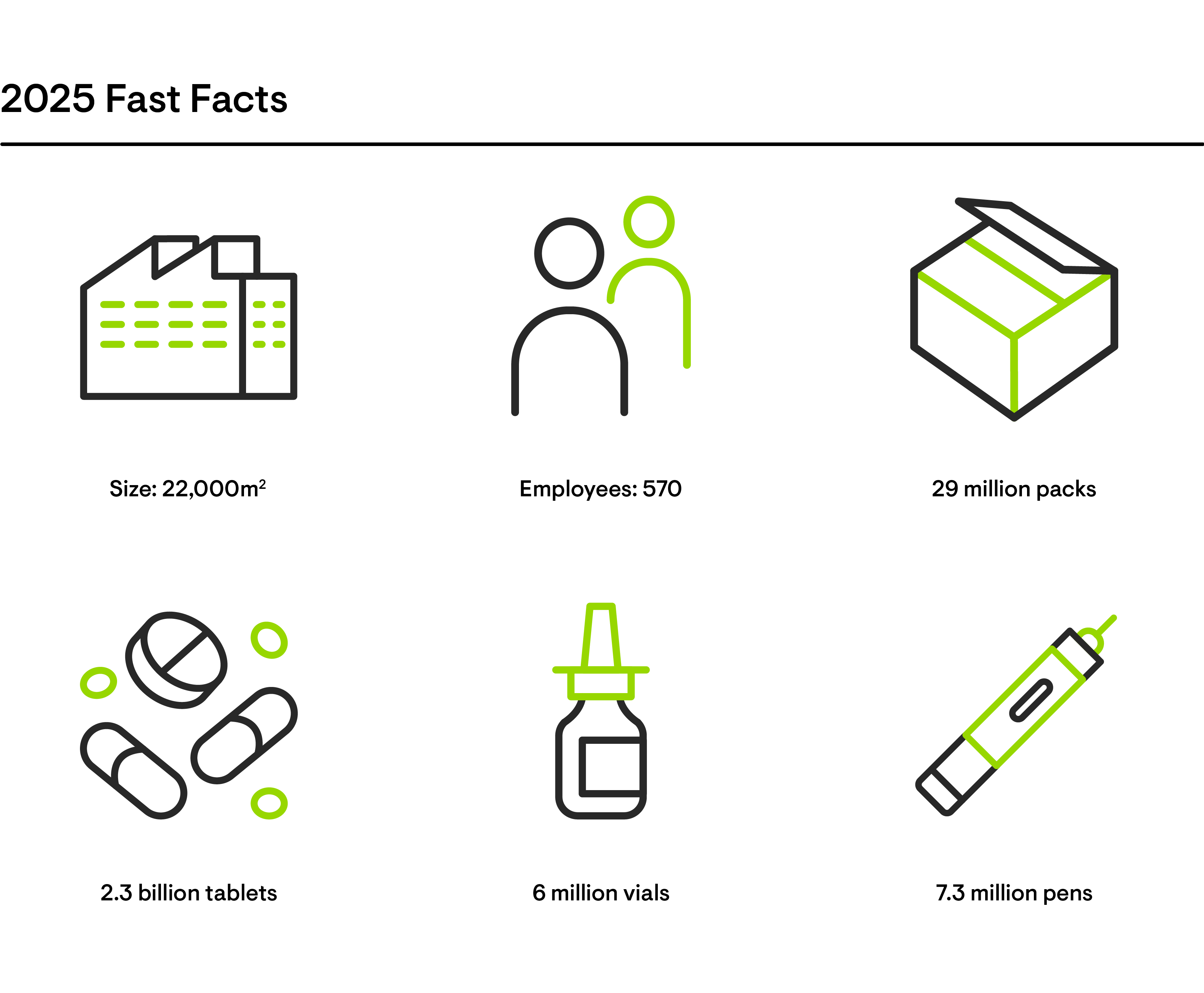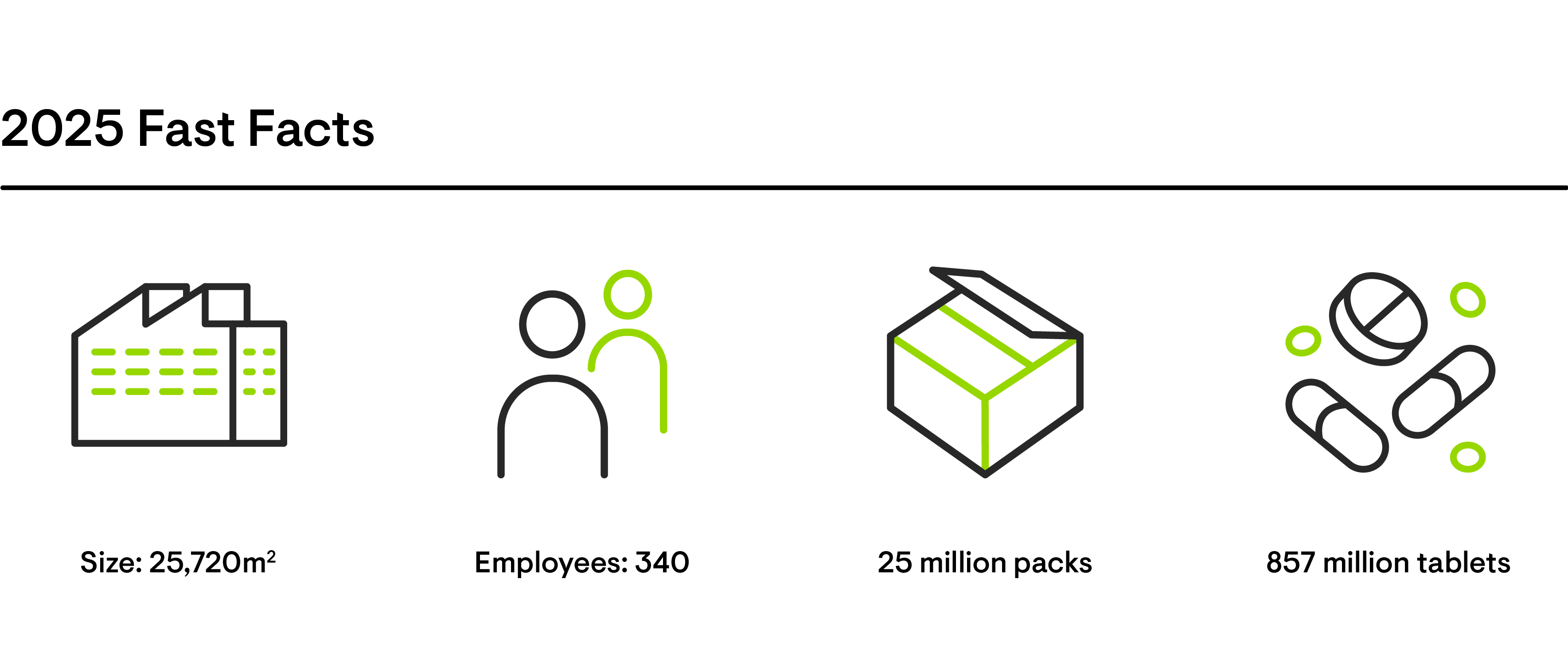 Origgio continues to strengthen its role in Grünenthal’s network and is entering a new growth phase. The site’s expansion master plan is well underway, with the canteen completed and construction of the new office building, vertical warehouse, and expanded packaging areas progressing on schedule. In 2025, Origgio completed the integration of the full Zomig portfolio (including Zomig ODT), shipped the first Qutenza batch packaged on site to the US, advanced the insourcing of Qutenza gel and Nexium tablets production, and started the integration of additional strategic products.