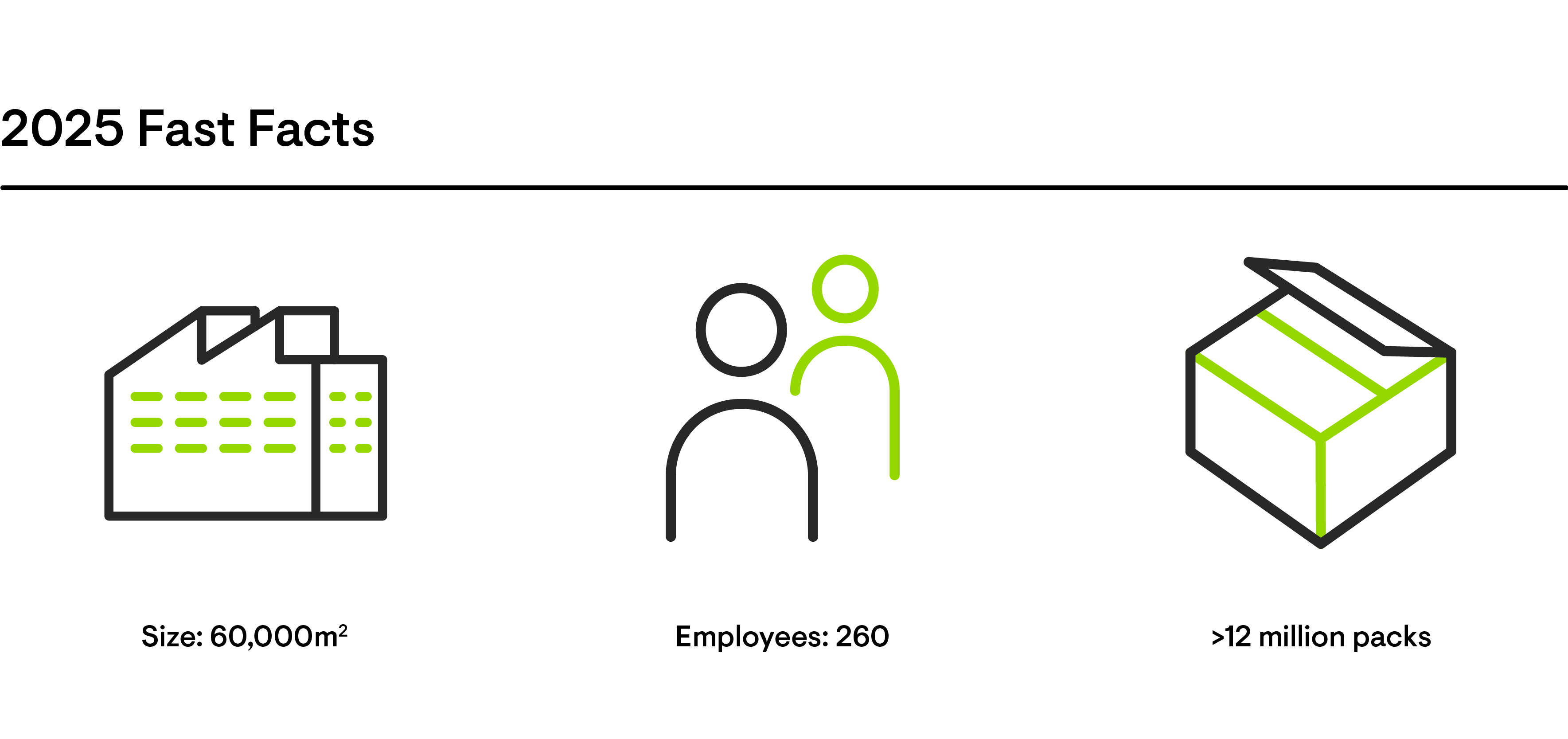 Aachen is Grünenthal’s largest packaging hub, responsible for a significant share of the company’s annual output. In 2025, the site delivered strong operational efficiency, driven by ongoing investments in automation and digitalization. Key innovations included the introduction of a QC release robot, zero-touch material flow, and digital packaging cards for the packaging centre. These advancements have further strengthened Aachen’s role in the network to support a wide range of core and integrated brands, including Nexium™, Vimovo®, and Qutenza®, and positioning the site for future growth.